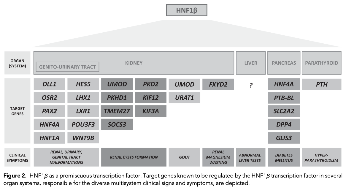 Hepatocyte Nuclear Factor 1β-Associated Kidney Disease: More than Renal Cysts and Diabetes. J Am Soc Nephrol. 2016;27:345-53. PMID: 26319241.