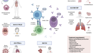 IFN-γ/IL-12経路はNTMをはじめとする細胞内寄生菌に対する防御機構において重要な役割を果たしている。抗IFN-γ中和抗体が存在していると、マクロファージによる貪食が阻害される。