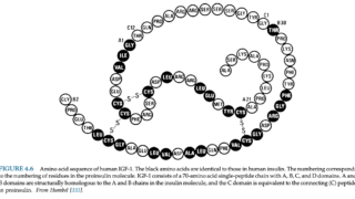 成長ホルモンは191アミノ酸からなる21.5kDaのポリペプチドで下垂体前葉のsomatotrophで産生され、成長促進と代謝調節の作用がある。