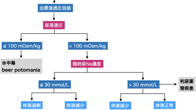 ①下痢 ②尿細管性アシドーシス ③腎不全 ④薬剤性をまず考える。